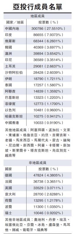 現時亞洲開發銀行提供資金,遠遠未能滿足區內需求,亞投行因而應運而生,並且在短時間內成員數目增加至七十多個,預期今年底進一步增加至八十五個,將會超過亞洲開發銀行,將成為僅次世界銀行的第二大金融開發機構。