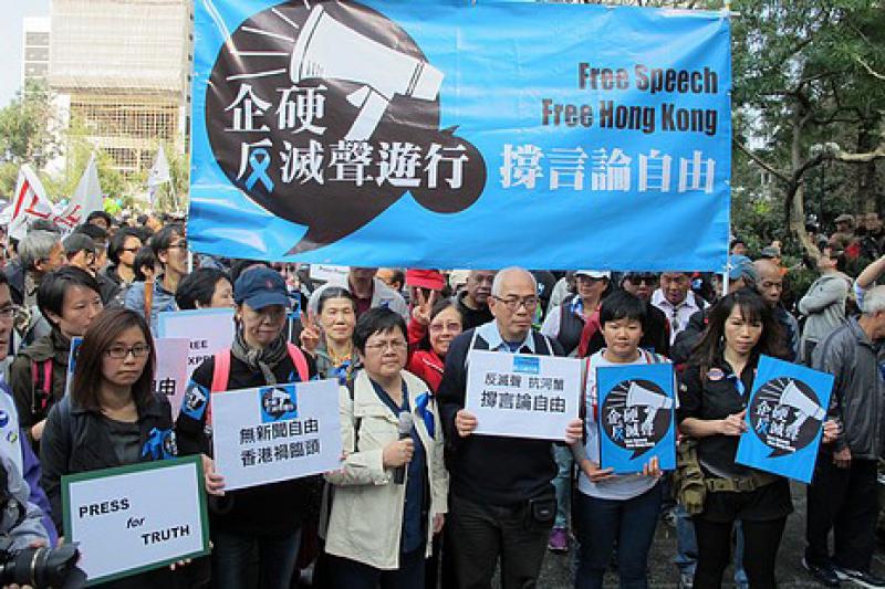 圖:香港記協平日高叫維護「言論自由」口號,但在記者被辱罵一事上卻抱雙重標準,兩者比對真是無限諷刺 資料圖片