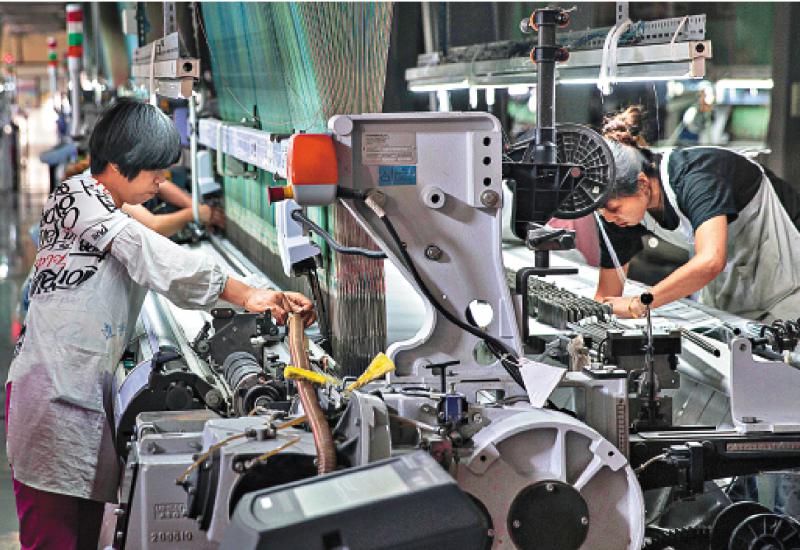 圖:多個國際組織和銀行均看好中國經濟形勢。圖為內地某絲綢廠工人在生產線工作