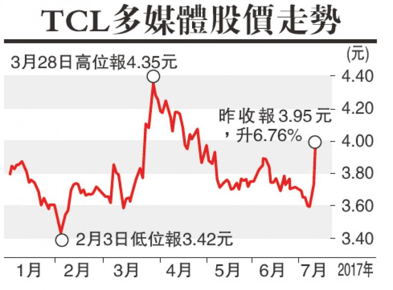另外,早前騰訊斥資4.5億元人民幣入股TCL多媒體(01070)旗下雷鳥科技,獲券商唱好的TCL多媒體昨日股價逆市向好,早段一度升逾8%,高見4.01元,收市創兩個月高位,報3.95元,升幅達6.8%。