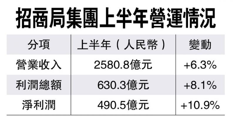 【大公報訊】記者林靜文報道:招商局集團昨日在深圳舉行2017年年中工作會議,今年上半年,集團實現營業收入2580.8億元(人民幣,下同),同比增長6.3%;利潤總額同比升8.1%至630.3億元;淨利潤升10.9%至490.5億元。集團董事長李建紅在會上進一步明確今後的發展布局:立足灣區,開拓雄安,重返上海,「一帶一路」。