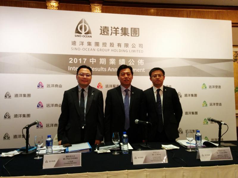 遠洋,圖。左起:總裁管理中心總經理朱曉星、主席兼行政總裁李明、公司秘書鍾啟昌