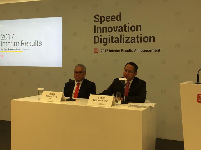 圖:利豐行政總裁馮裕鈞(右)表示,集團會維持高派息政策,旁為主席馮國綸/大公報記者陳詠賢攝