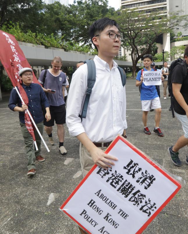 圖:主張「港獨」的香港民族黨昨日到美國駐港總領事館請願,竟要求美國政府考慮取消《香港關係法》,以制裁中國和特區政府/本報記者林少權攝