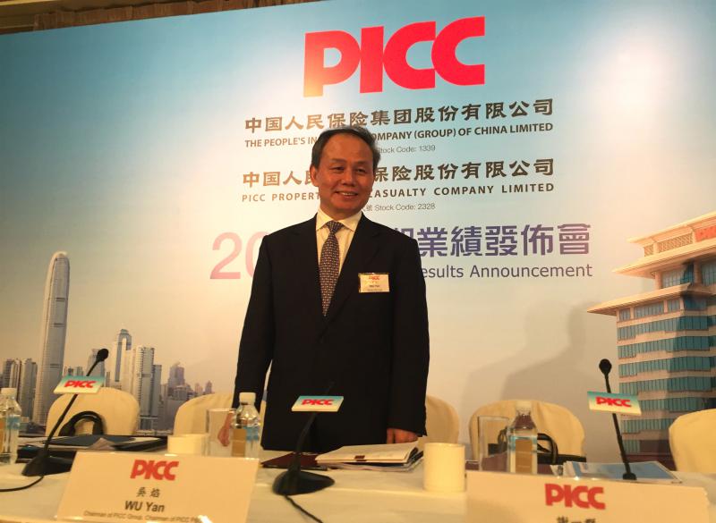 中國人民保險集團董事長及中國財險董事長吳焰出席中期業績發布會(大公報記者吳涵宇攝