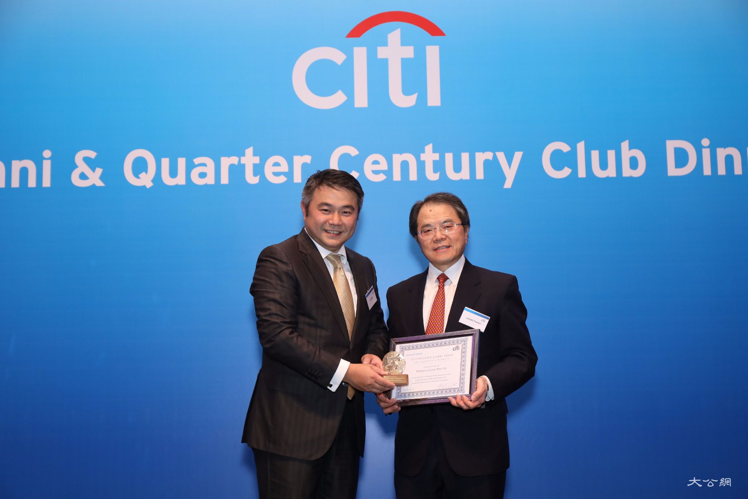 大公網9月14日訊(記者邵淑芬)香港花旗集團於日前舉行「舊生及銀禧職員會晚宴」,超過350名現職及前任員工出席。當晚,「卓越舊生獎」香港區得主亦於席上公布,得獎者是花旗集團前環球金融亞太區主席,有「紅籌股之父」稱譽的梁伯韜,以嘉許他在引進紅籌國企進入香港股票市場的成就,以及他對提升花旗集團在大中華地區的競爭優勢所作出的貢獻。