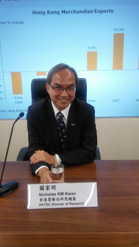 圖:貿發局研究總監關家明料香港全年出口值增速仍可達5%之目標 大公報記者李永青攝