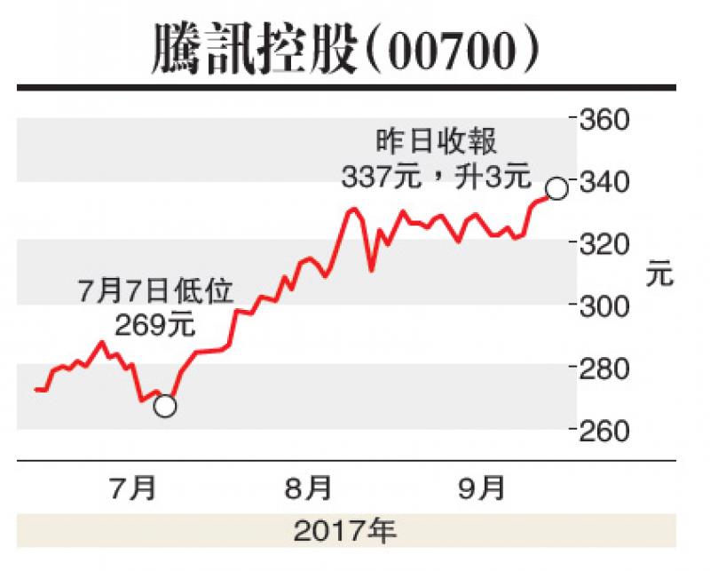 要說勇者無敵,仍然是股王騰訊。昨日搶繮而上,收三三七元,升三元。我頭牌講過騰訊不跌,股市不死。好友昨日力捧騰訊,實行「單天保至尊」,恒指不致跌得太難看,騰訊上升功不可沒。