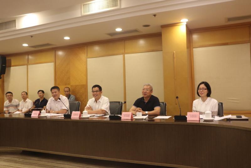 圖:前排左起:廣東省環境保護廳宣傳教育與交流合作處處長許金州、發展和改革委員會總經濟師黃華東、交通運輸廳黨組成員及副廳長徐欣、商務廳綜合處副處長鄒璟菲接受港澳媒體群訪 大公報記者吳涵宇攝