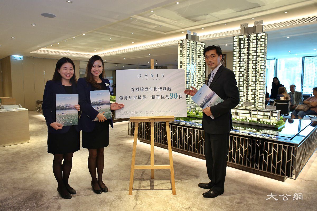 大公網9月21日訊(記者梁穎賢) 會地常務董事黃光耀指,旗下東九啟德OASIS次輪開售即晚沽出80伙,短短7日兩輪累沽212伙,佔已推售單位逾97%,套現近20億元,反應理想,旋即加推首階段最後一批90伙,市值近12億元,包括88伙分層及兩伙低座頂層複式戶,標準戶實用面積由275至549方呎,折實611萬元起,折實平均呎價22791元,撇除景觀及樓層因素,今批微加1至2%。另兩伙涉低座AZURE (低座D座)5及6樓的A及B單位,分別1,156及921方呎,定價3994.5萬及3245.7萬元,折實價3215.6萬及2612.8萬元,折實呎價27,817及28,369元,後者再挑戰項目新高。昨晚已上載銷售安排,該批單位落實周日發售。