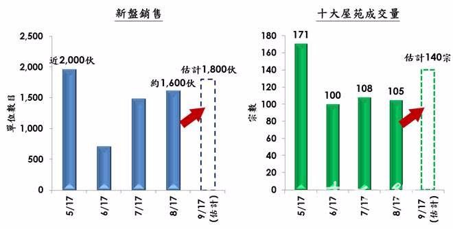 美聯物業首席分析師劉嘉輝指出,雖然聯儲局正式啟動「縮表」,但「縮表」議題於今年六月早已提出,市場早已消化有關消息。事實上,本月住宅物業交投理想,本月首20日新盤已售出約1,300伙。在大型新盤部署開售下,估計全月可望達1,800伙,屆時超越8月約1,600伙,並創四個月新高。至於二手方面,綜合美聯分行資料,十大屋苑於本月首20日已錄106宗買賣,已追上8月全月的105宗。預期「縮表」短期對樓市交投影響不大,估計本月10大屋苑有力續升至140宗,創四個月新高。