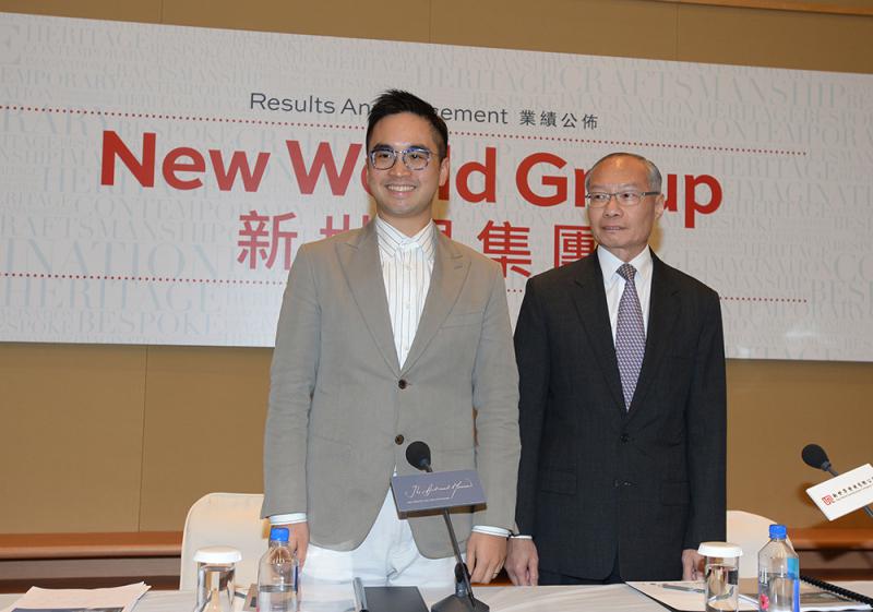 ▶新世界發展執行副主席兼總經理鄭志剛(左)稱,未來會積極購買土儲;旁為執行董事兼財務總監歐德昌