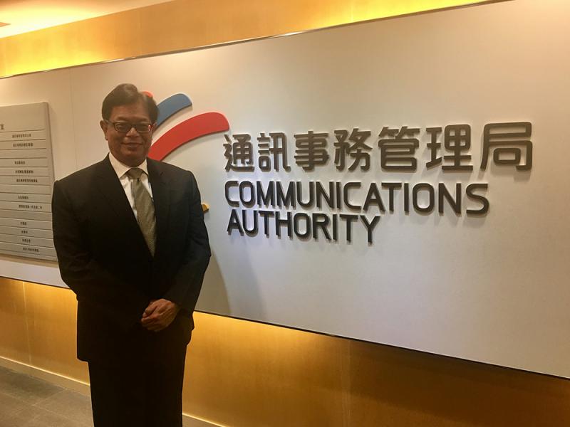 圖:通訊事務管理局主席王桂壎表示,正研究放寬植入式廣告議題,並強調從沒有與廣播公司「交惡」 大公報記者林靜文攝