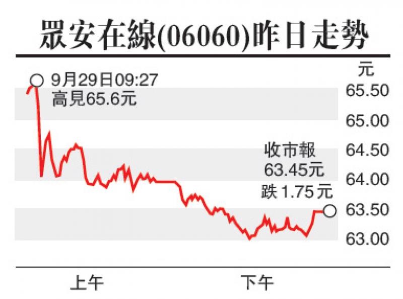 擁有「三馬」為股東的眾安在線於周四掛牌上市,由於公開發售一手中籤率為100%,因此首兩日高位都有沽壓,但周五收市仍高於上市價59.7元6.3%。除了股價表現受注目外,今次眾安在線作為香港首隻具金融科技概念股份,來港上市亦備受市場矚目,因隨着金融科技發展成熟,將顛覆金融市場生態,港交所(00388)應積極吸納更多具條件上市的金融科技公司來港掛牌。