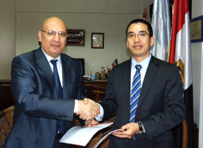 圖:比亞迪中東非洲汽車銷售事業部總經理黃志學(右)與亞歷山大市交通管理局主席Khaled Eleiwa出席簽約儀式