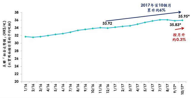 大公網11月9日訊(記者 林惠芳)私人住宅租金9月份回落後,10月再度回升,於高位穩企。美聯物業表示,今年10月份以實用面積計算的私樓平均呎租約35.95元,按月回升約0.3%,首10個月租金累升約6%。