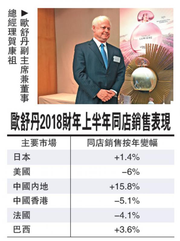 【大公報訊】記者陳詠賢報道:歐舒丹(00973)公布2018財年中期業績,上半年銷售按年跌0.6%至5.48億元(歐元,下同),純利跌57.4%至1107.7萬元,每股盈利0.8仙,不派中期息。集團稱,上半年財年淨利減少,主要因為期內匯率變動、去年重組L'Occitane au Brésil之交易及關店開支,以及季節性因素影響。