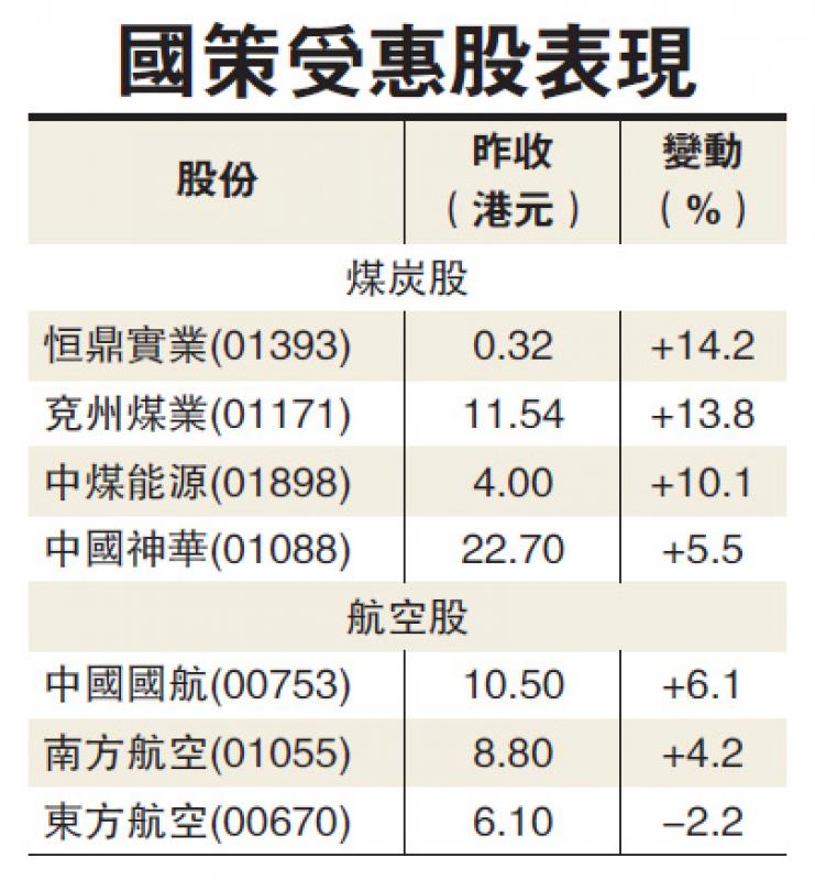 【大公報訊】發改委上周五公布《關於進一步推動煤炭企業兼併重組轉型升級的意見》,支持有條件的煤炭企業之間實施兼併重組、支持煤企及電企兼併重組,積極發展煤電聯營、貫徹化解煤炭行業過剩產能,推動退出過剩產能等及加快處置「殭屍企業」等。在利好媒企政策消息下,加上受內地近期暴雪影響冬煤運輸,煤價急漲,帶動煤炭板塊股價創新高。