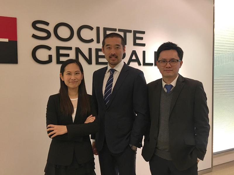 圖:左起:法興證券上市產品銷售部副總裁蔡秀虹、亞太區主管陳其志、副總裁周翰宏」大公報記者李潔儀攝
