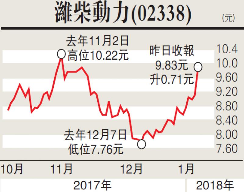 濰柴動力(02338)管理層去年底提出,旗下子公司「陝重汽」2018年生產20萬輛的目標。陝重汽於去年共出產16萬輛,為濰柴2017年收入突破2000億元發揮了支撐作用。
