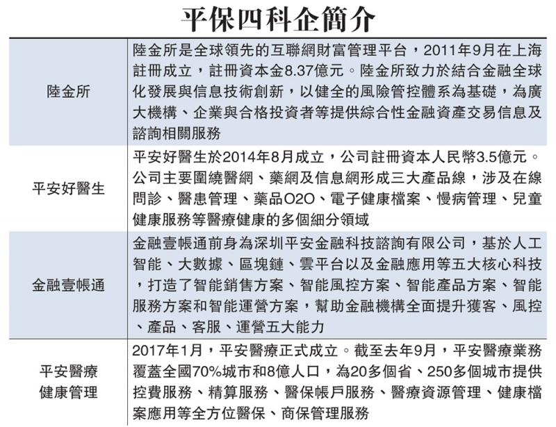 市場早已盛傳平保將短期內分拆陸金所及平安好醫生在港獨立上市。早前有報道指,陸金所將於4月赴港上市,估值達600億美元(約4680億港元)。承銷券商為大摩、美林、美國銀行、花旗以及瑞信。平安好醫生市傳目標集資約10億美元(約78億港元),估值達50億美元(約390億港元),消息指已獲軟銀及IDG資本投資,兩者擬入股4億美元(約31億港元)。