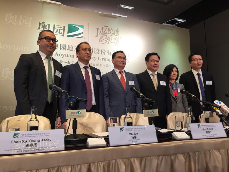 圖:圖左起為奧園副總裁陳嘉揚、營運總裁馬軍、副主席郭梓寧、主席郭梓文、首席財務官鍾平及副總裁陳志斌