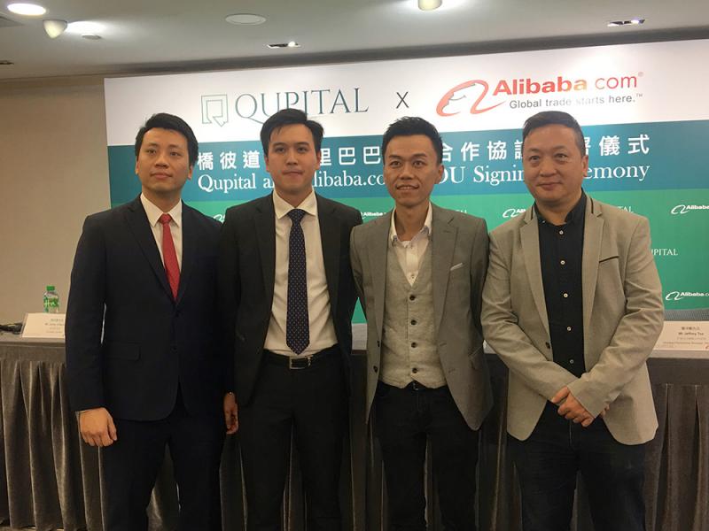 圖:左起:Qupital總裁張卓賢、Qupital創辦人黃永東、阿里巴巴B2B香港業務總經理吳增炫、阿里巴巴B2B戰略合作經理謝卓勳 大公報記者李潔儀攝