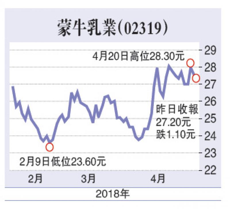 中美貿易戰陰霾揮之不去,惟對中國內需消費領域影響較小,其中蒙牛乳業(02319)去年業績扭虧為盈,今年更推出多項新產品,增長趨勢有望延續,現水平可順勢跟入,值博率不俗。世界杯即將舉行,集團為贊助商之一,或成股價上升催化劑。