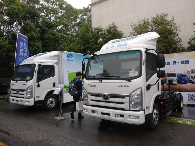 圖:圖為「二○一八首屆中國綠色物流節」上展出的新能源物流車 大公報記者賀鵬飛攝
