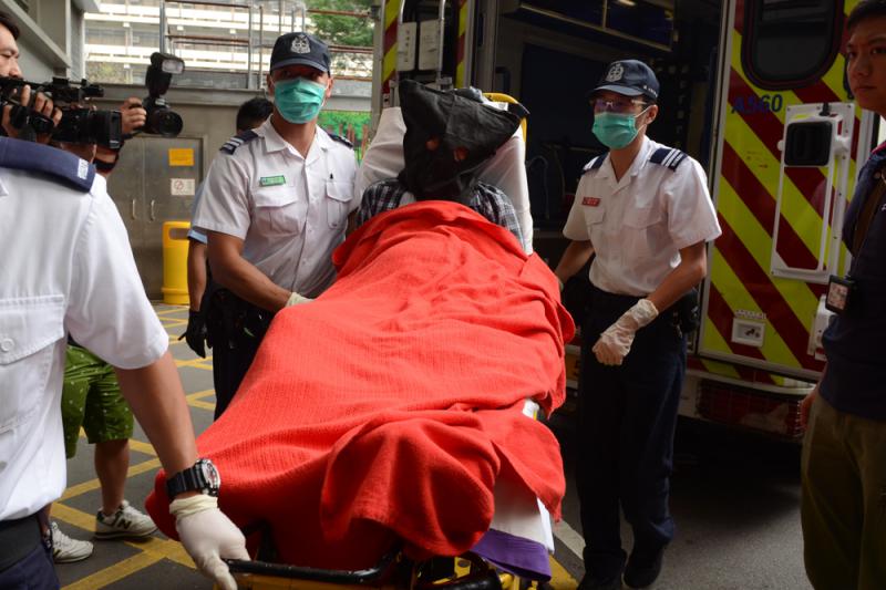 姓周(58歲)保安主管聞訊到來,上前勸止,惟對方揮刀亂舞,割傷周的左前臂,衣袖亦被割破。其他人見狀,一擁而上合力將疑人按地制服,警員接報到場將疑人拘捕。受輕傷的周送院經敷治後已無大礙。警方初步懷疑疑犯精神病發後犯案。