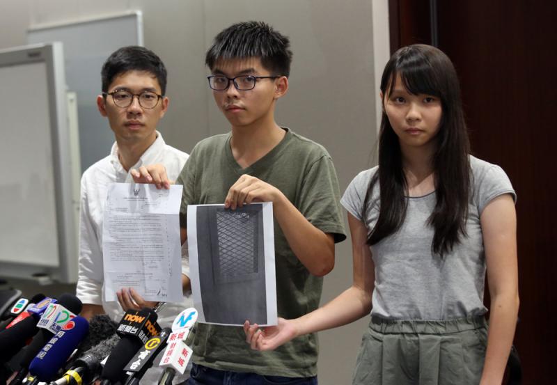 圖:黃之鋒(中)與香港眾志成員昨晚召開記者會,交代被禁入境泰國經過\大公報記者黃洋港攝