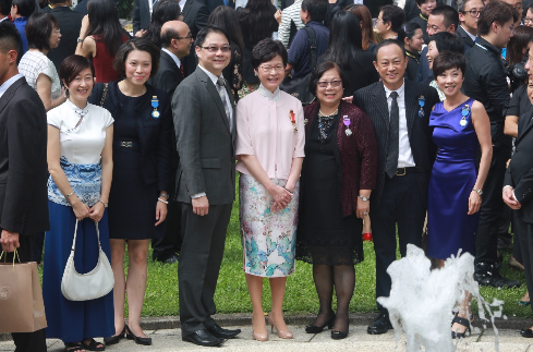政務司司長林鄭月娥(中)獲頒大紫荊勳章