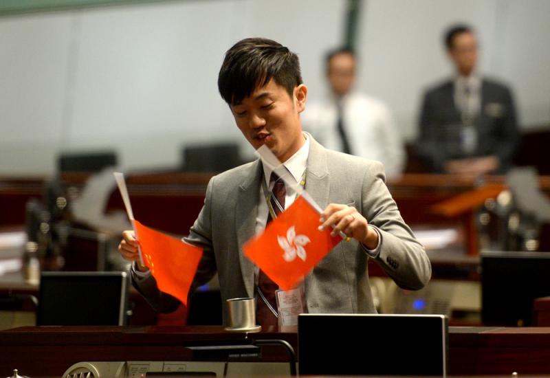 【大公報訊】記者李淇報道:「熱血公民」立法會議員鄭松泰早前在立法會大會上,兩度走到建制派議員座位前,將枱面的國旗和區旗倒插。立法會議員謝偉俊昨午去信內務委員會,要求在下月14日立法會會議上,動議譴責鄭松泰行徑,根據基本法和議事規則,若動議獲三分之二議員贊成,立法會主席須隨即宣告鄭喪失議員資格。建制派議員一致支持有關動議,強調鄭松泰行為不尊重國家,十分幼稚。