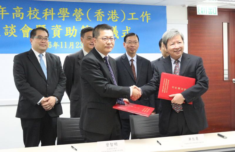 【大公報訊】記者劉舒婷、張琦報道:全國政協委員、香港金利來集團有限公司副主席兼行政總裁曾智明,昨日與中國科協青少年科技中心副主任單長勇在香港簽署合作備忘錄。其中,曾智明青少年發展基金會自2017年起,將連續五年每年贊助香港師生550人(包括500名中學生,50名帶隊教師)參加「青少年高校科學營」活動,金利來集團則贊助2017年全部參加活動的香港師生的服裝。中聯辦教育科技部部長李魯,中聯辦教育科技部副巡視員張總明等出席簽約儀式。