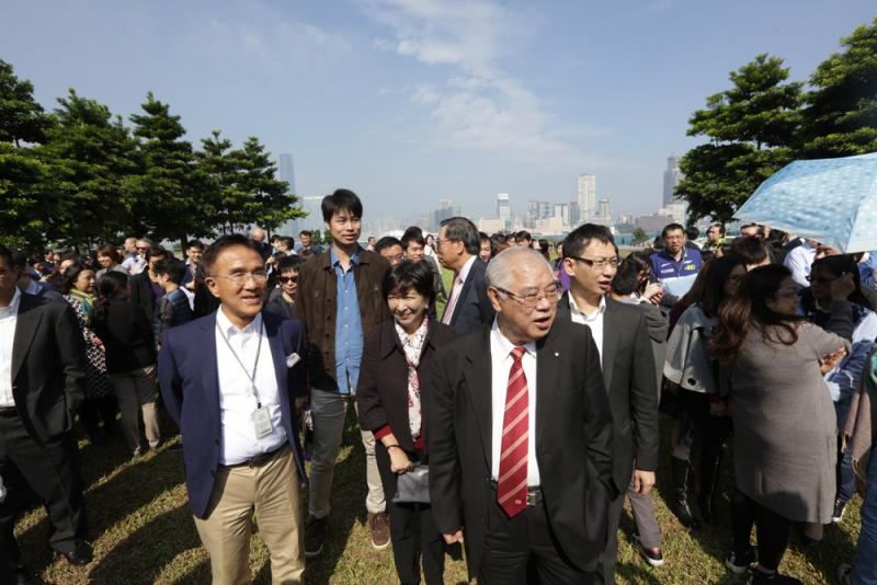 圖:立法會綜合大樓昨午舉行年度火警演習,立會議員由大樓步行至添馬公園集合