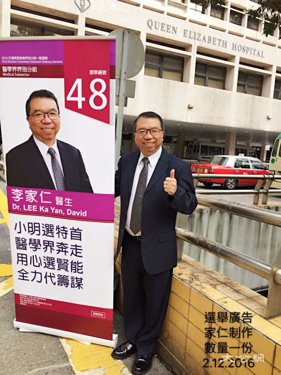 李家仁在伊利沙伯醫院門外拉票。