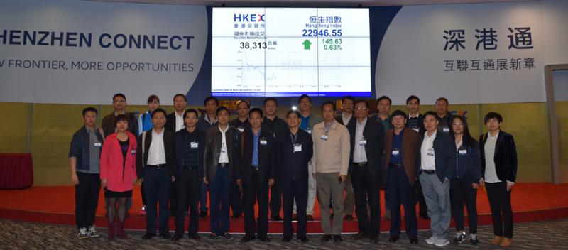 學習期間,學員們到香港交易所考察,受到交易所企業活動策劃管理主管陳心愉的熱情接待,她為學員們講解了港交所對香港經濟中的重要角色和滬港通、深港通的情況。考察當日正值深港通開通翌日,學員對於內地與香港的股票市場交易機制甚感興趣,並踴躍提問,探討有關雲南省企業來港上市的情況。