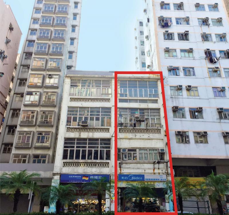 圖:荔枝角道舊樓有待確定其歷史建築物的評級,紅線框為今次出售的169號