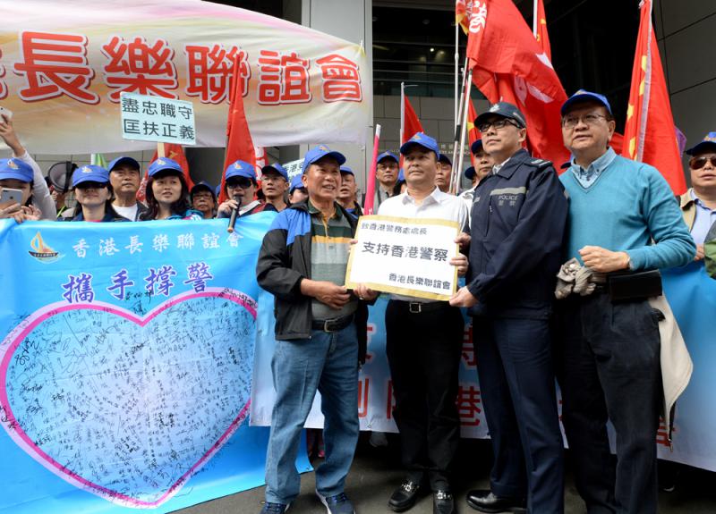 【大公報訊】香港長樂聯誼會昨日早上舉行「撐警除『獨』」遊行,約五百名會員參加。隊伍從西營盤中山紀念公園出發,眾人拉着「攜手撐警」「支持特區政府剷除『港獨』禍害」橫幅,手持標語,沿途高叫「支持香港警察」口號,遊行約一小時後抵達灣仔警察總部,向警方遞交支持信。