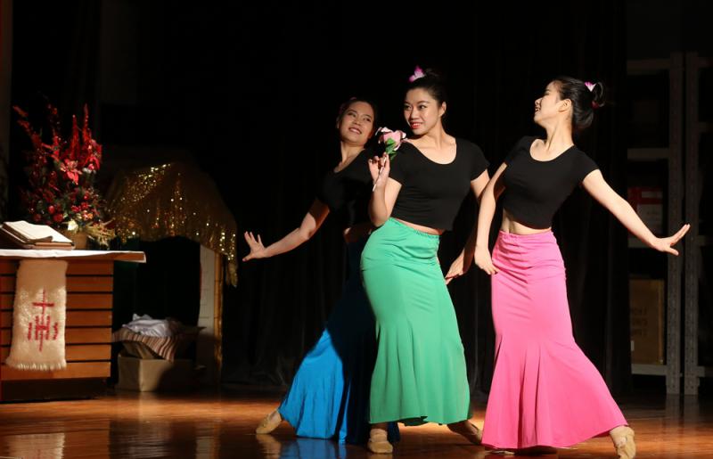 圖:女兵表演傣族舞《花兒》,載歌載舞/大公報記者何嘉駿攝