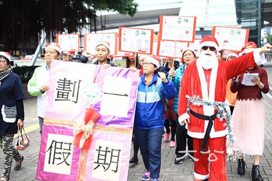 大公網12月24日訊(記者楊州)港九勞工社團聯會到政府總部請願,要求盡快將12天法定假期,劃一為17天公眾假期。