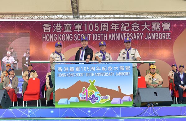 梁振英已是兩個月來第三次以童軍總領袖身份出席童軍活動。兩個月前,他參加了一年一度的童軍大會操;本月初則返回其中學母校英皇書院,參加該校第五旅童軍的周年宣誓日儀式。今日,他出席童軍105周年紀念大露營開幕禮。