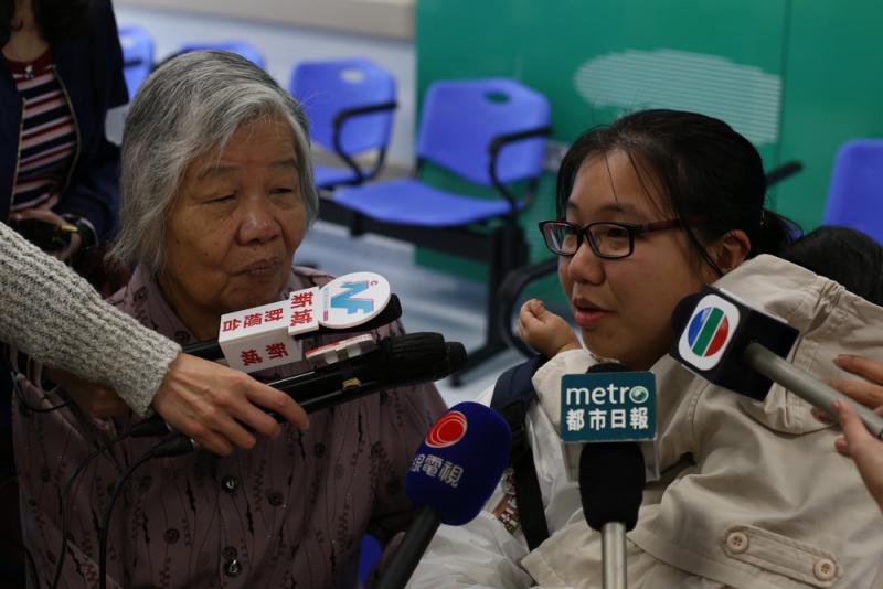 圖:黃小姐(右)昨日陪婆婆到天水圍醫院覆診/大公報記者何嘉駿攝