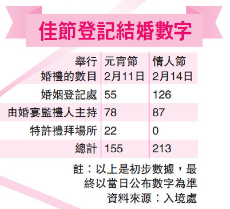 佳節登記結婚數字