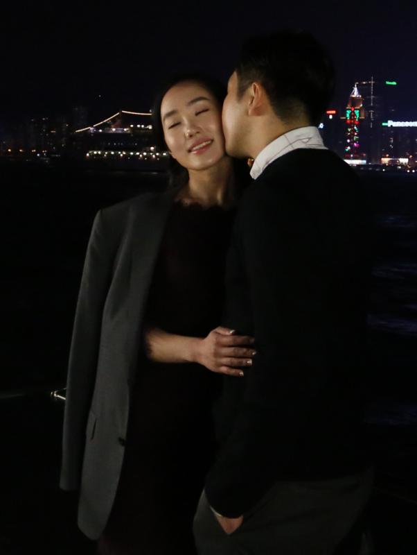 圖:尖沙咀綵燈會一隅,男子輕吻女友/大公報記者何嘉駿攝