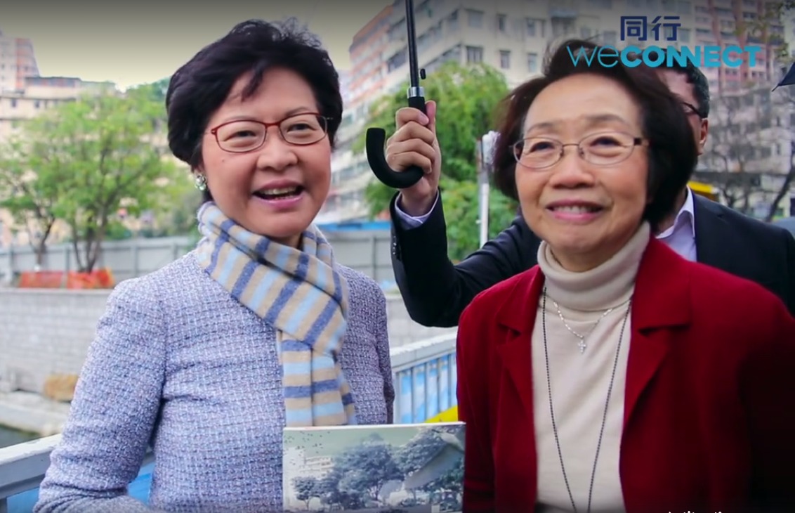 行政長官選舉候選人林鄭月娥(左)今日由工聯會榮譽會長陳婉嫻陪同下落區,到訪啟德河和黃大仙。