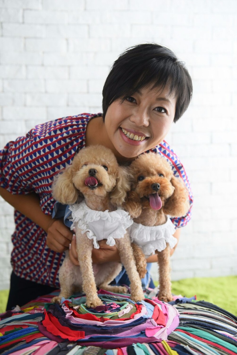 麥美娟和她的愛犬麥棗(右)、麥糖(左)。