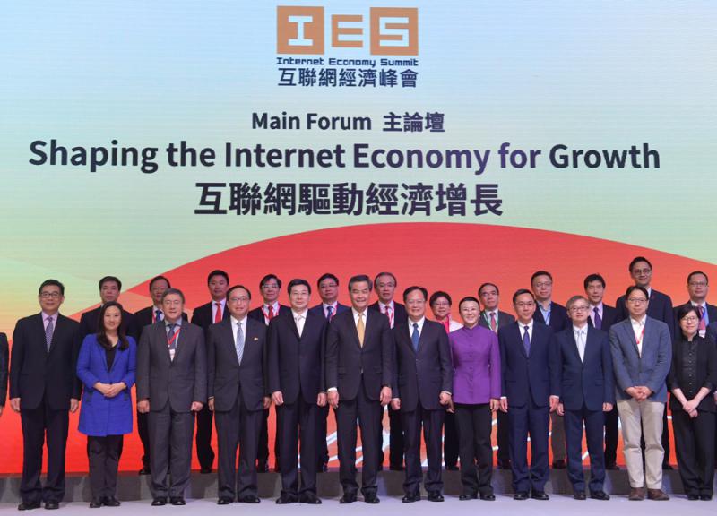 圖:「2017互聯網經濟峰會」的主論壇「互聯網驅動經濟增長」昨日在香港會展中心舉行。全國政協副主席、行政長官梁振英(前排左六)作為主禮嘉賓出席論壇