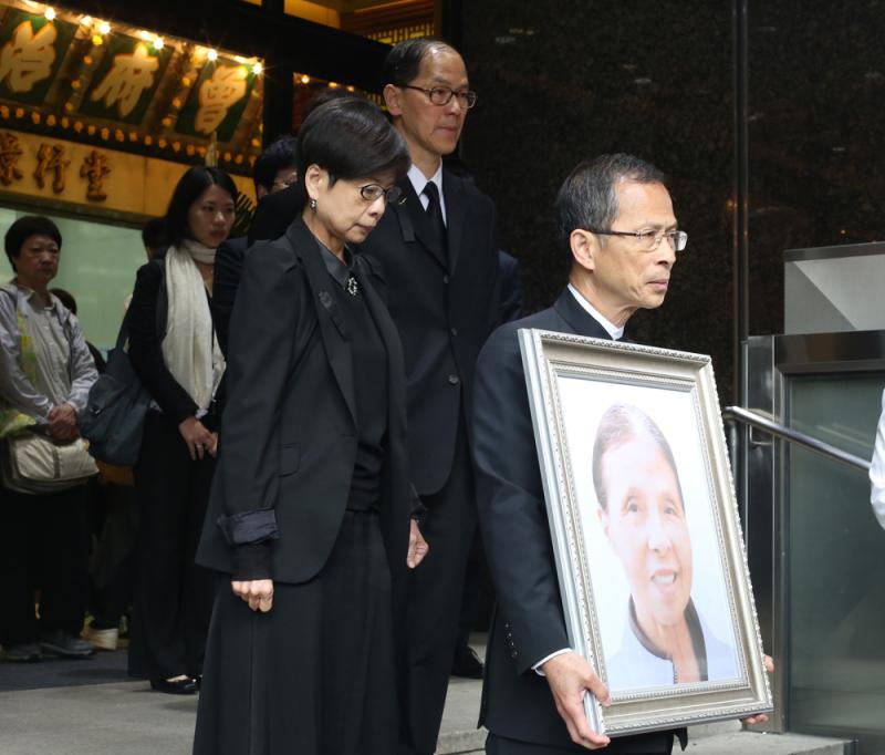 一身素服的曾鈺成伉儷與曾德成伉儷,昨晨一早抵達世界殯儀館景行堂打點一切,約30名親友其後陸續到場。香港中華總商會永遠榮譽會長楊釗和民建聯主席李慧琼亦前來到場致哀。多名政商界人士致送花牌表達敬意,包括全國政協常委范徐麗泰、全國政協外事委員會副主任盧文端、十二屆全國人大代表、立法會秘書長陳維安,以及多名民建聯區議員。