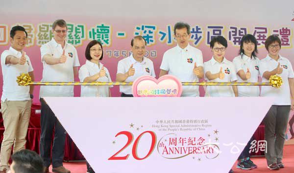 政務司司長張建宗早上到深水埗家訪和派發福袋,是慶回歸二十周年的活動之一。/賣潤田攝